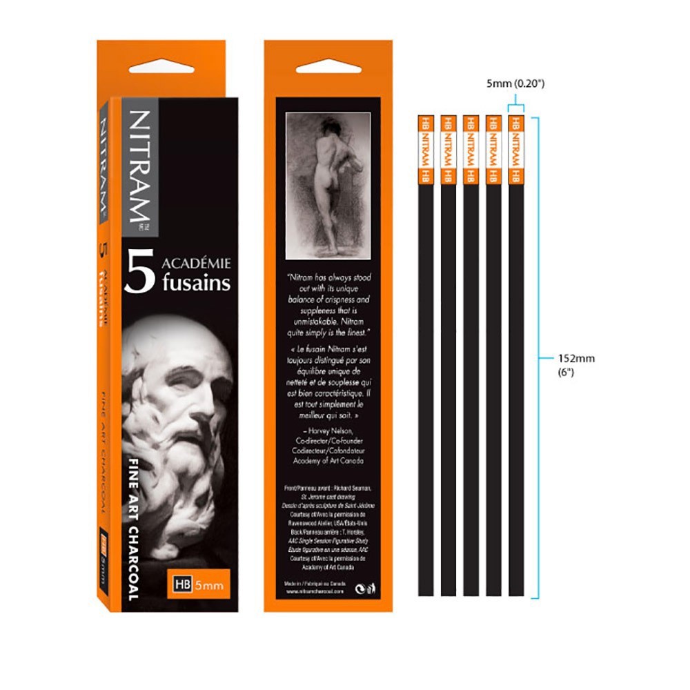 Nitram academie Fine art Charcoal 5 fusians, HB, 5mm