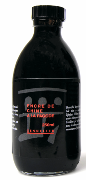 Sennelier inks, which are likened to Indian inks, are available in a selection of high quality colours. Extremely rich, these inks are manufactured with shellac gum giving them a unique brilliance and brightness. They can be applied with a brush or ink pen and give a satin to brilliant film depending on thickness.