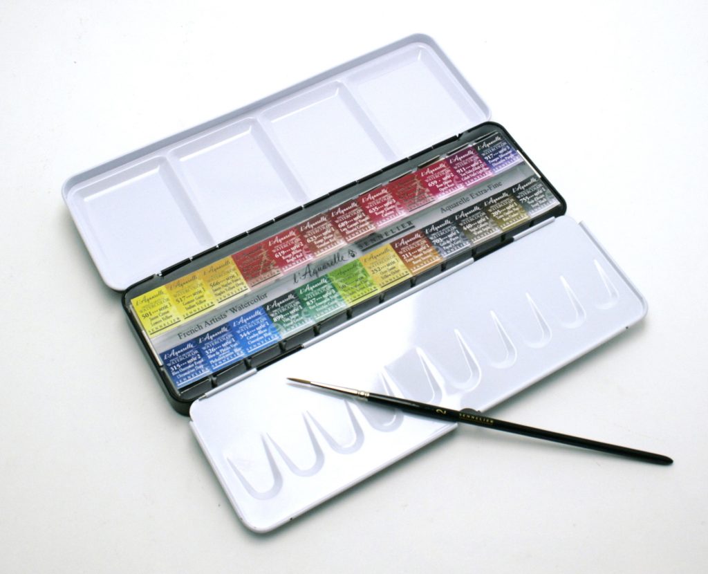 Sennelier Watercolour 24 half pans metal box and 1 brush