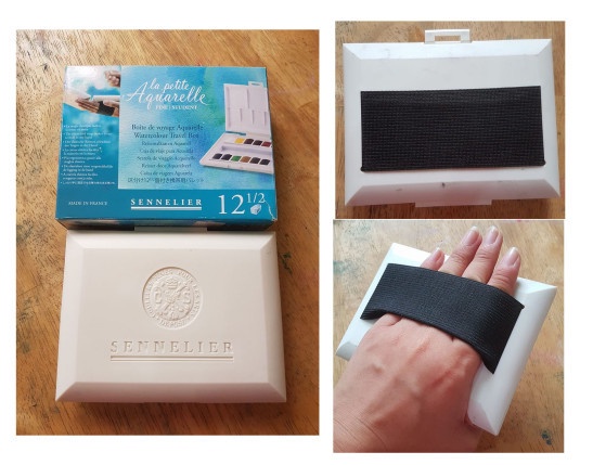 Built into the bottom of each plastic box is a comfortable, wide elastic strap that keeps the travel box securely in the palm of your hand while you paint. Close the lid to easily store and transport the watercolours.