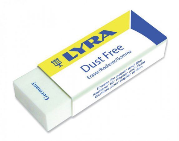 Error-free creativity. Mission accomplished from every angle, thanks to the Lyra latex eraser! This chisel-shaped eraser is one of the world’s most popular; the perfect way to remove pencil and ink marks from any surface.The red part of the eraser removes black and coloured pencil marks, while the blue part erases ink, ballpoint pen, print and coloured inks.