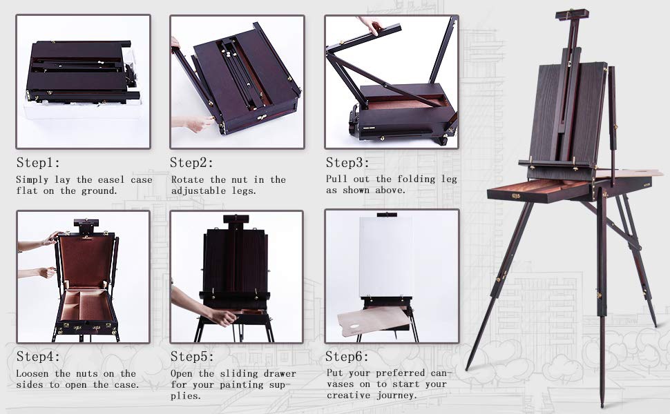 - The easel contains an in-built drawer with compartments to keep your paints and other supplies organized. It also includes a full size 28x46cm wooden palette that can be stored inside the drawer for the ease of storage and transport.