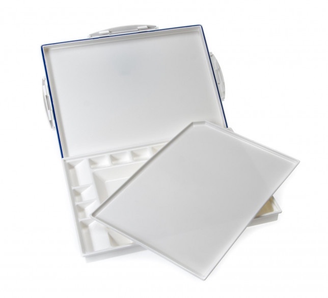 Supplied complete with a useful separate mixing tray and 20 deep pigment wells, this rigid, airtight sealed box is perfect for keeping your paints fresher for longer.
